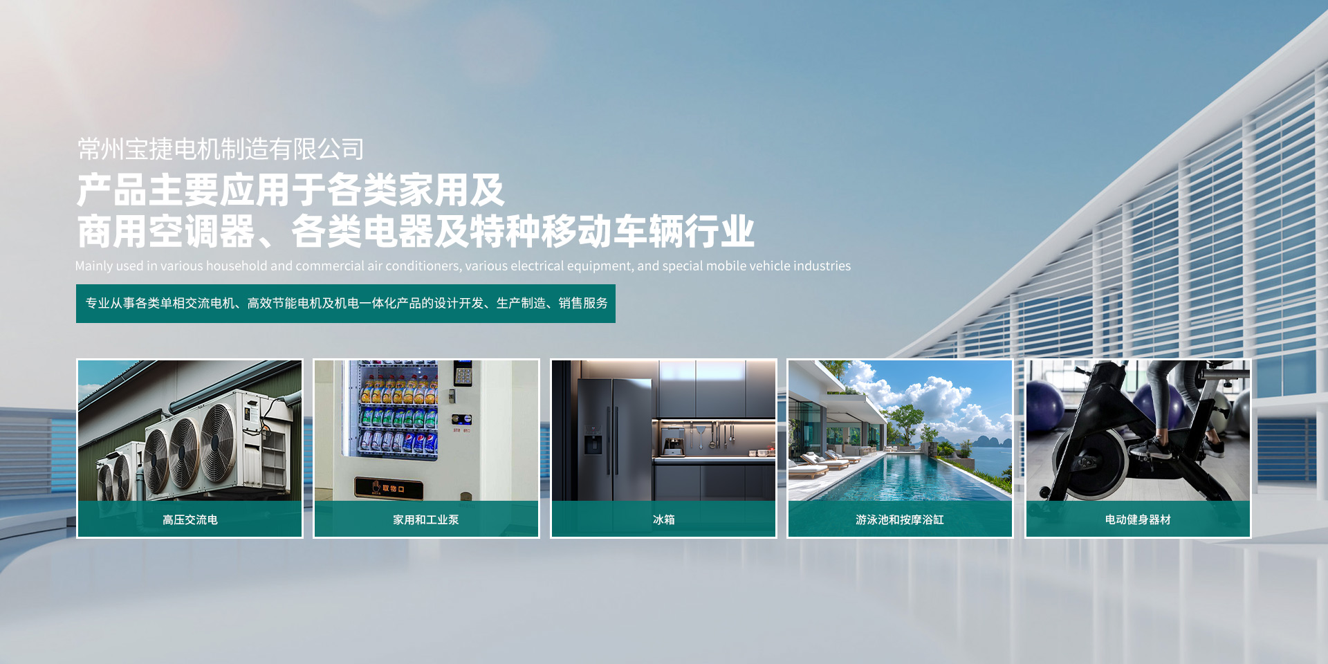 常州寶捷電機制造有限公司,成立于2001年。專業(yè)從事各類單相交流電機、高效節(jié)能電機及機電一體化產(chǎn)品的設(shè)計開發(fā)、生產(chǎn)制造、銷售服務(wù)的中美合資企業(yè)。產(chǎn)品主要應(yīng)用于各類家用及商用空調(diào)器、各類電器及特種移動車輛行業(yè)。產(chǎn)品符合UL、CE、CSA、SASO、CCC、ROHS等國際標準,全部出口歐美等國際市場。公司獲得IATF16949:2016質(zhì)量體系認證,擁有UL認證實驗室,應(yīng)用SAP精益管理系統(tǒng),為國內(nèi)外客戶提供優(yōu)質(zhì)的產(chǎn)品和服務(wù)!
